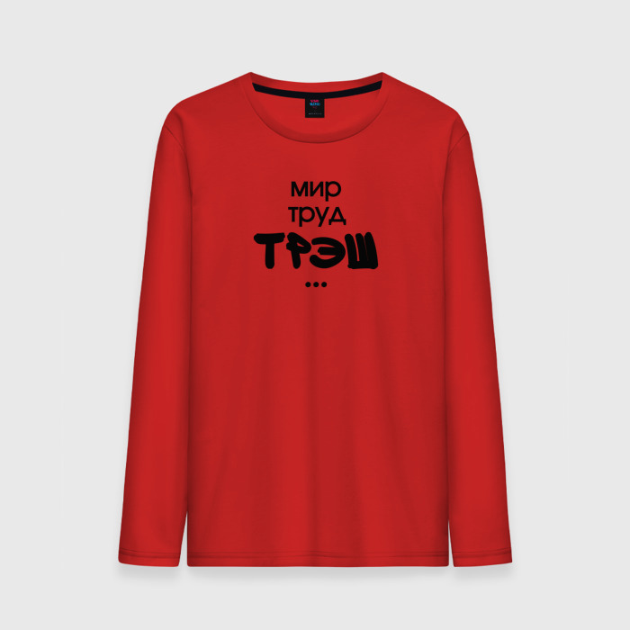 Мужской лонгслив хлопок с принтом Мир труд трэш