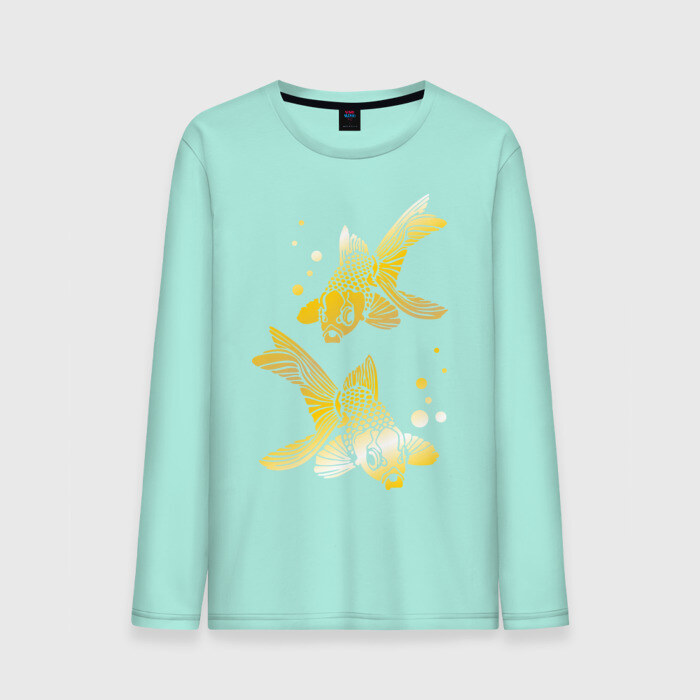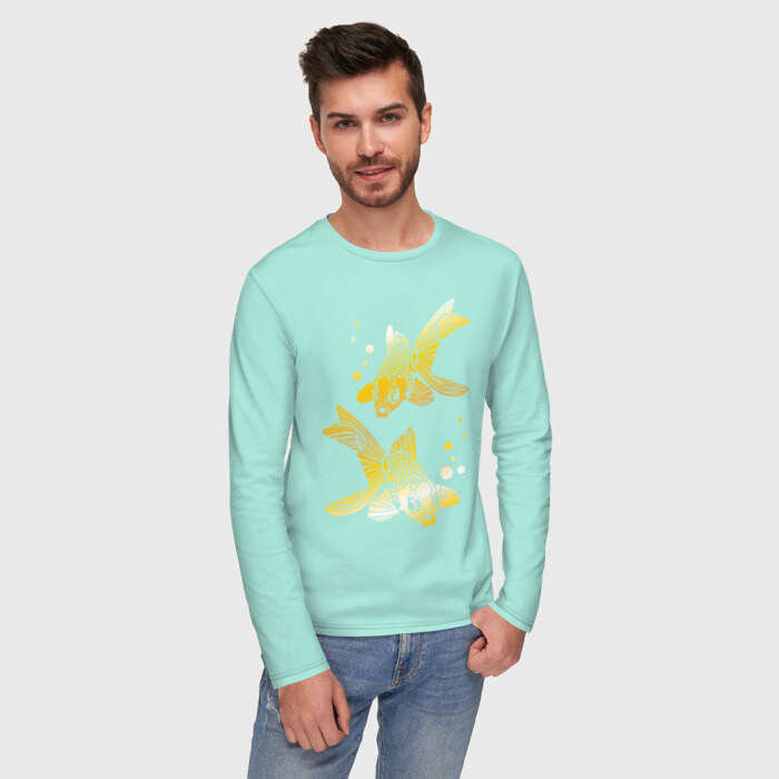 Мужской лонгслив хлопок с принтом Золотые рыбки