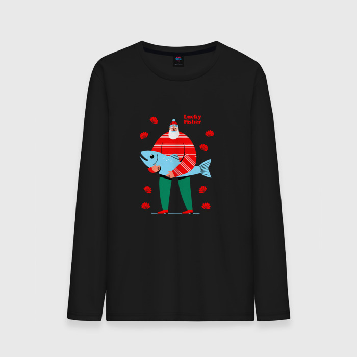 Мужской лонгслив хлопок с принтом Рыбак с уловом в руках