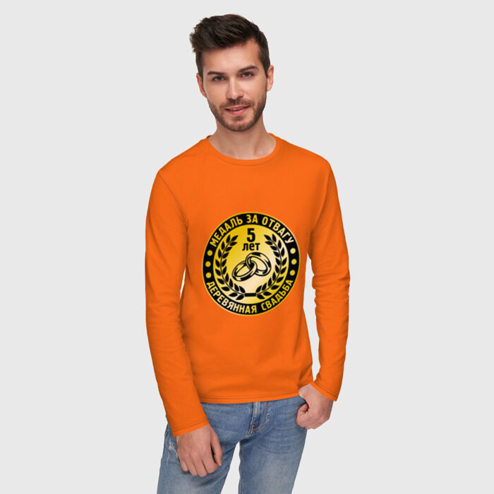 Мужской лонгслив хлопок с принтом 5 лет. Деревянная свадьба. Медаль за отвагу