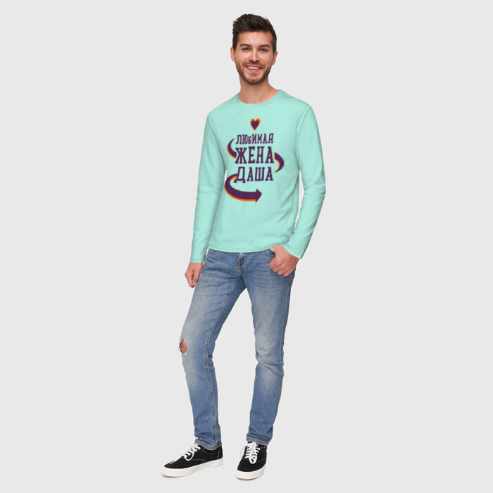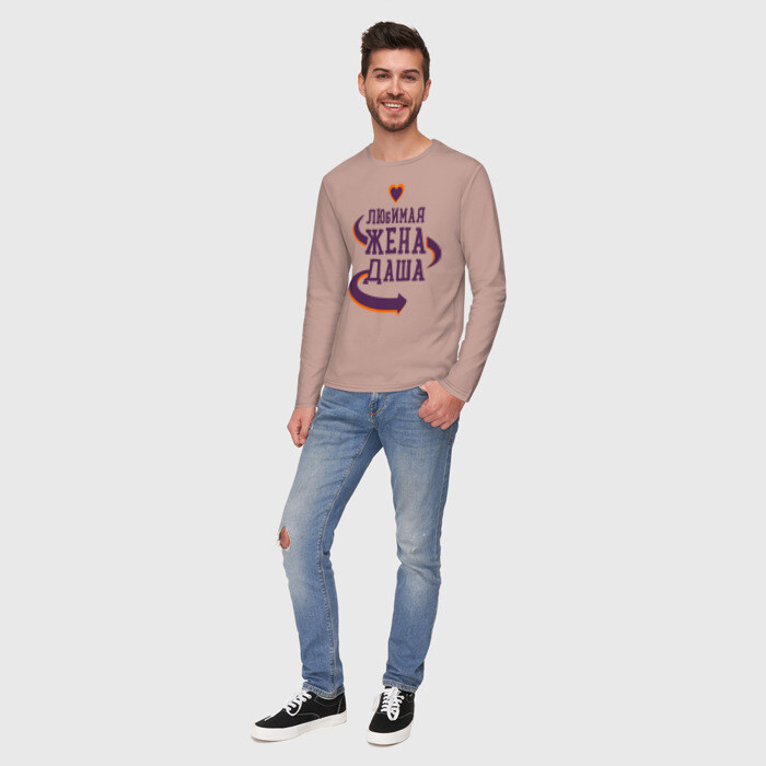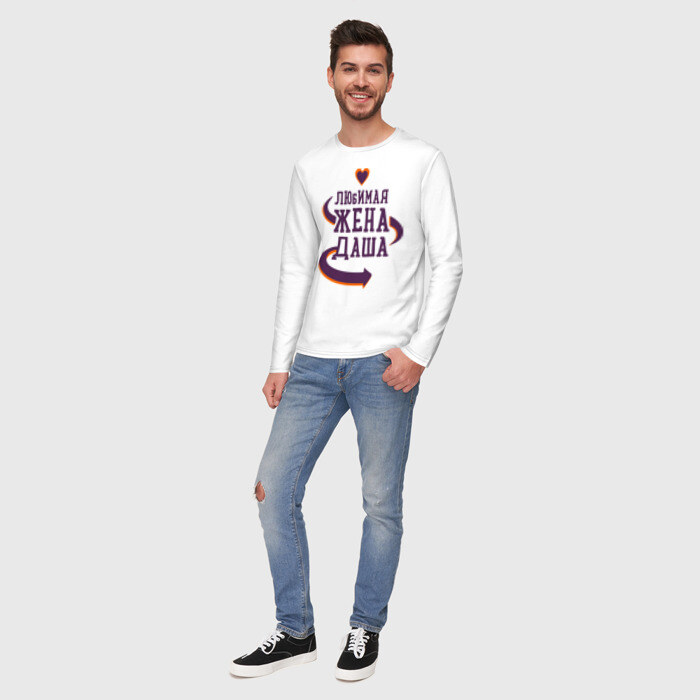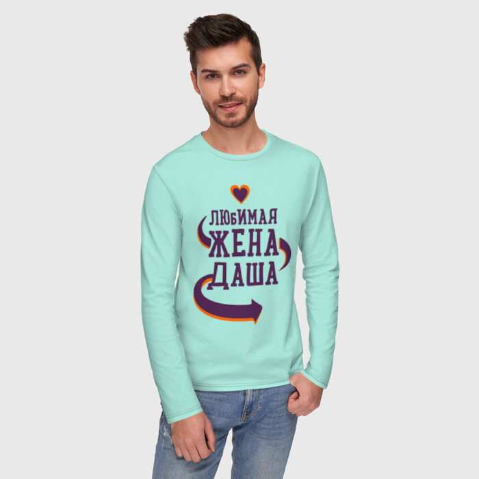Мужской лонгслив хлопок с принтом Любимая жена Даша