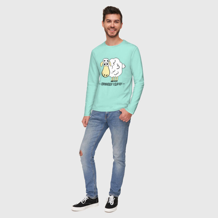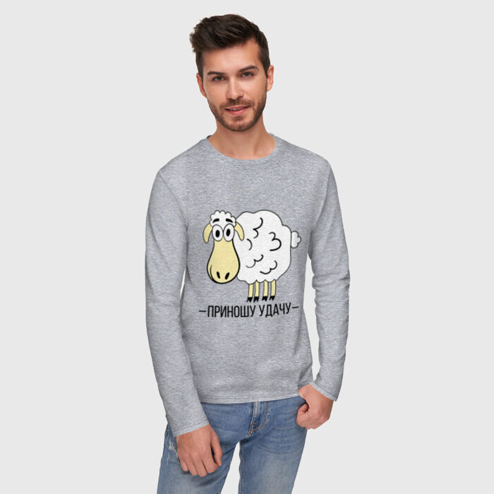 Мужской лонгслив хлопок с принтом Приношу удачу