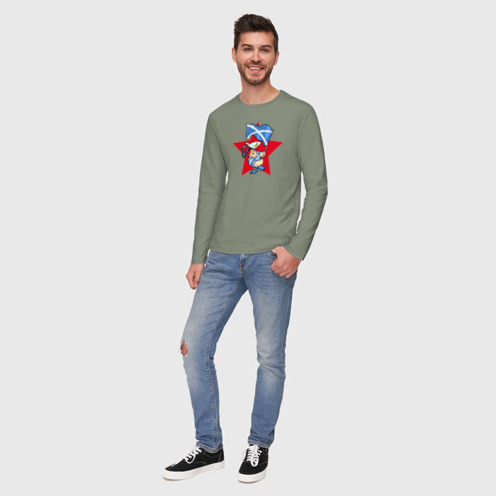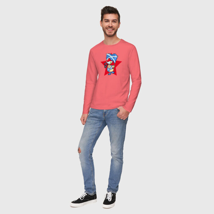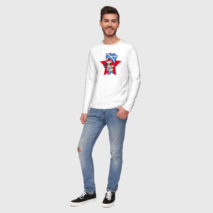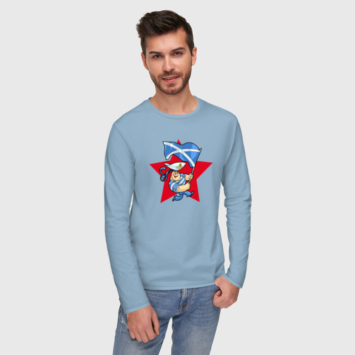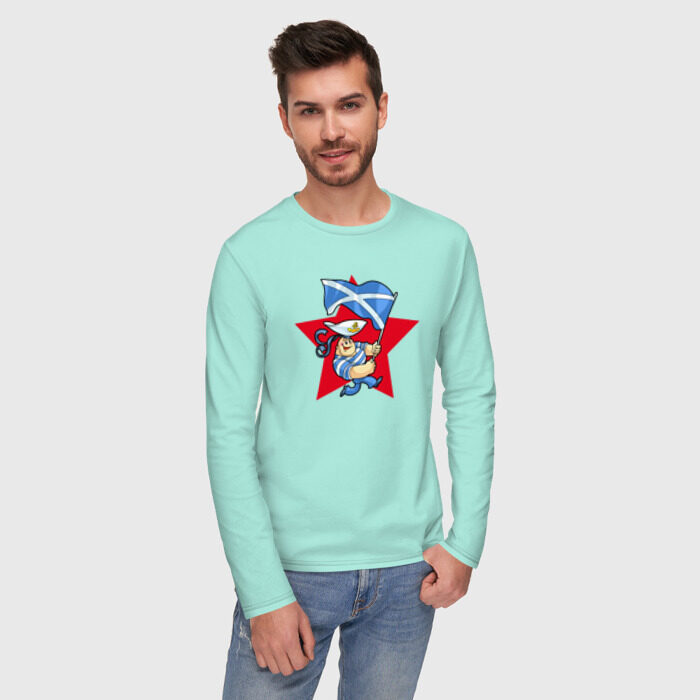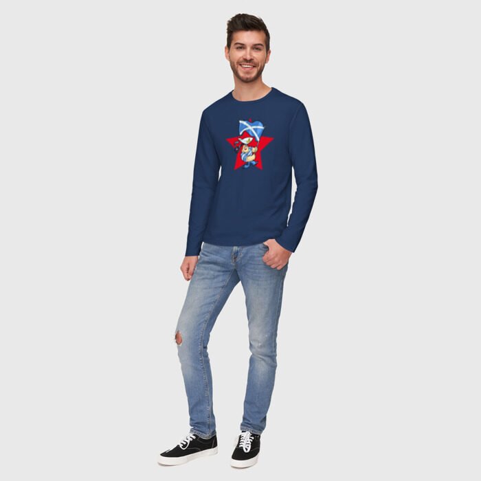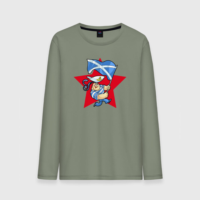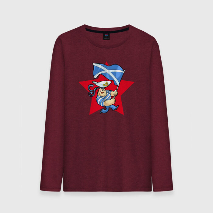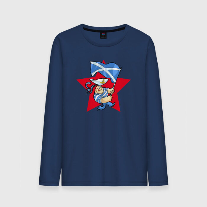 Мужской лонгслив хлопок с принтом Моряк с флагом ВМФ