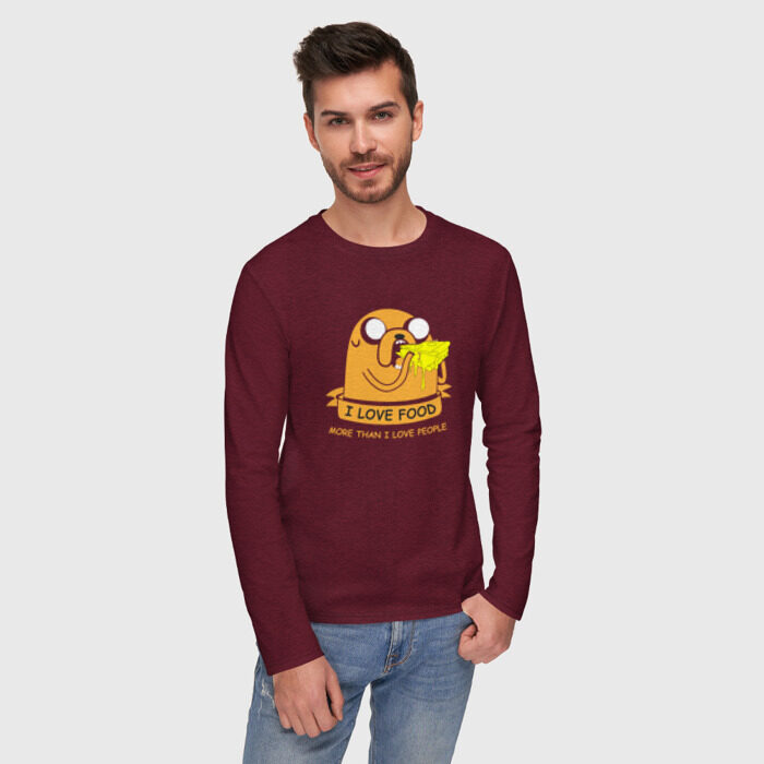 Мужской лонгслив хлопок с принтом Я люблю есть, больше чем людей