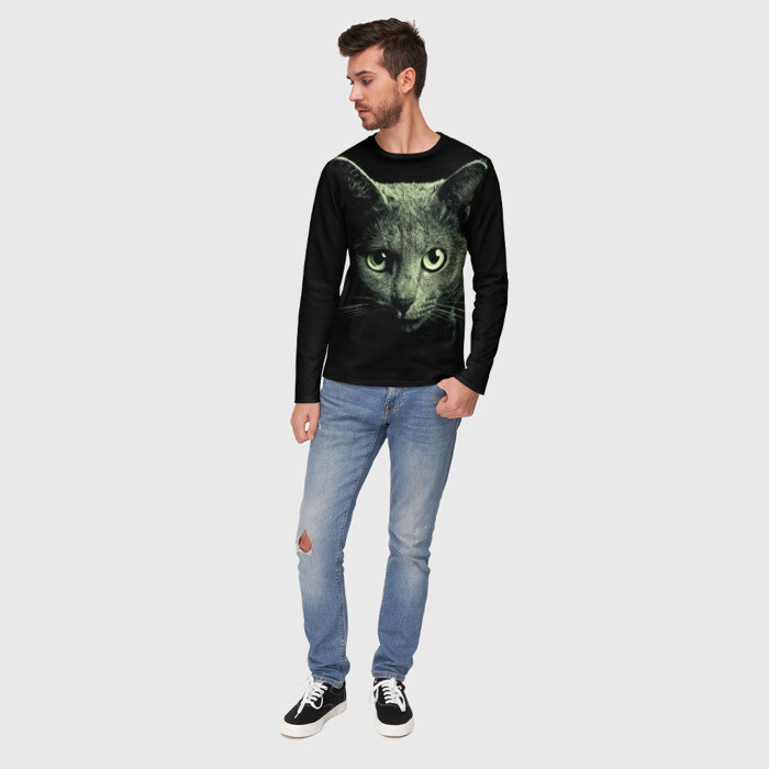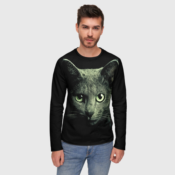 Мужской лонгслив 3D Серый котик