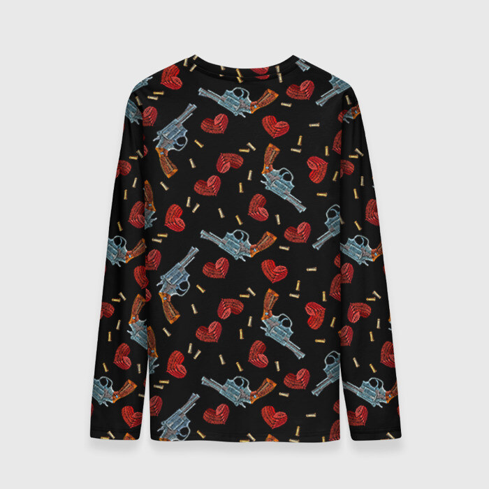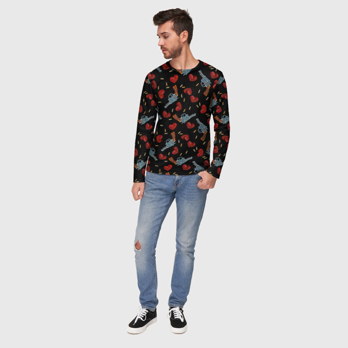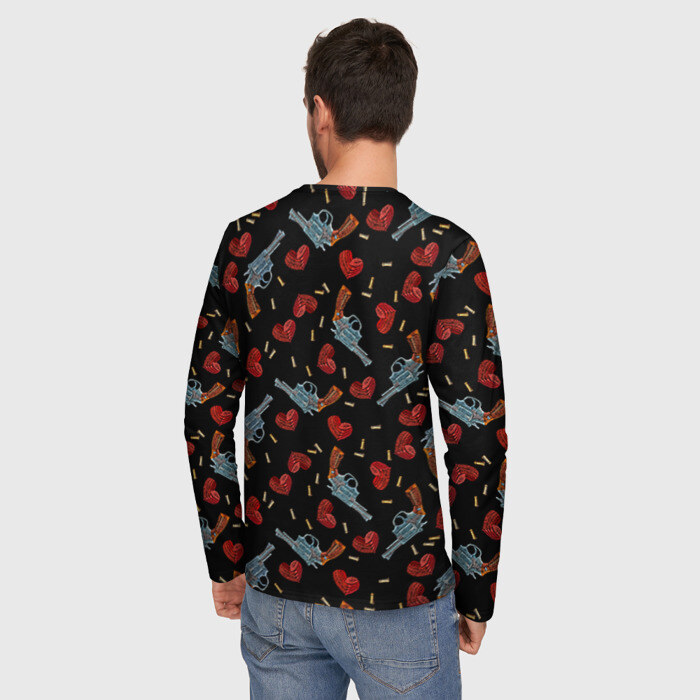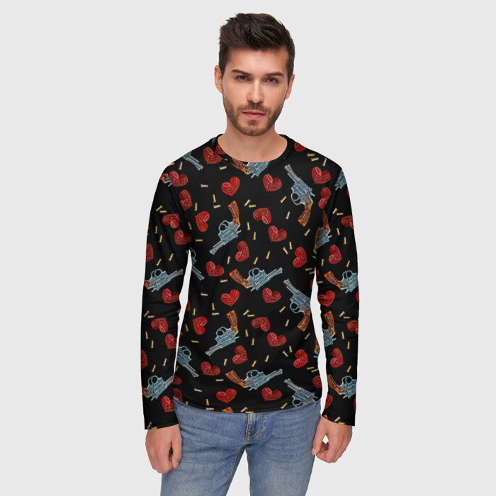 Мужской лонгслив 3D с принтом Револьверы и Розы