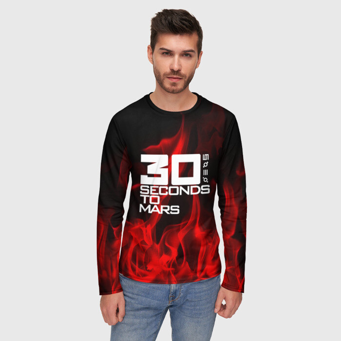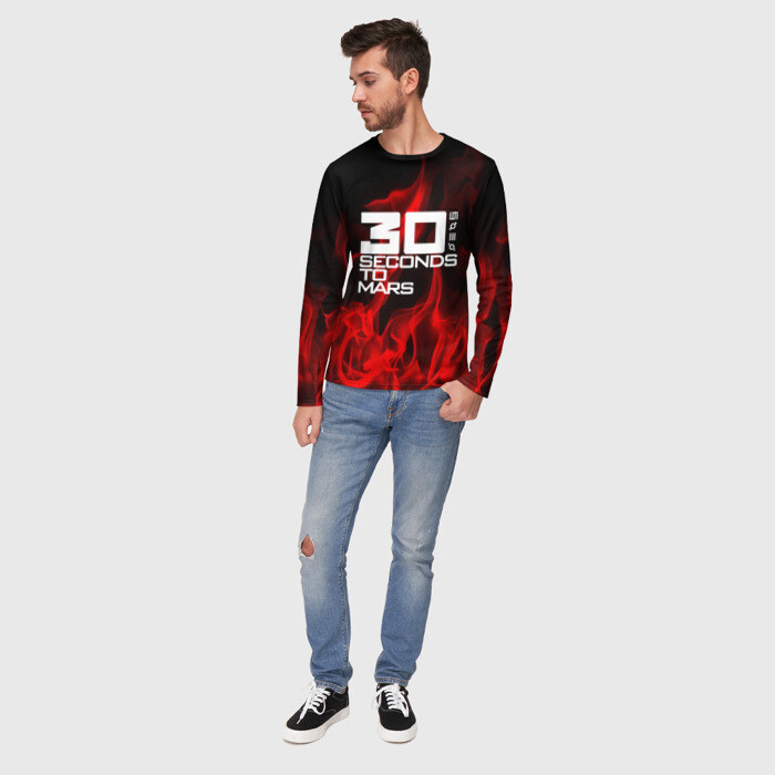 Мужской лонгслив 3D 30 Seconds to Mars in fire