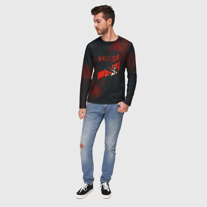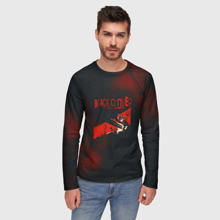 Мужской лонгслив 3D с принтом Чёрный клевер