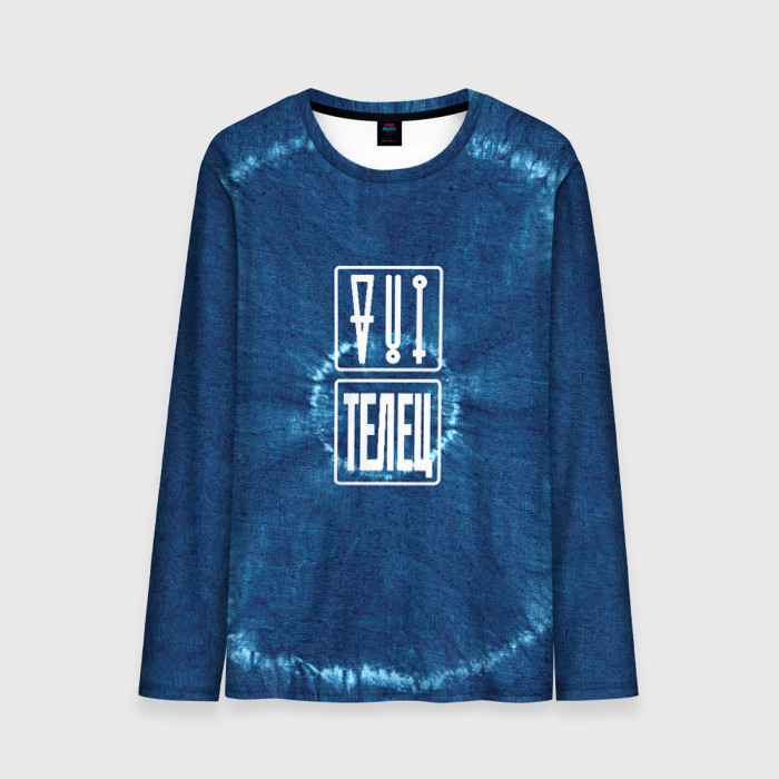 Мужской лонгслив 3D Знак Тельца на фоне тай дай