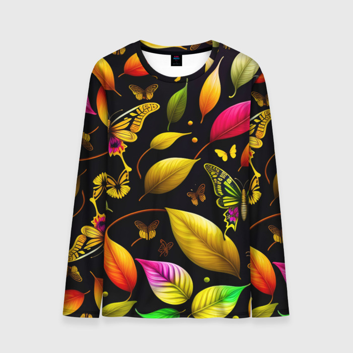 Мужской лонгслив 3D с принтом Листья и бабочки