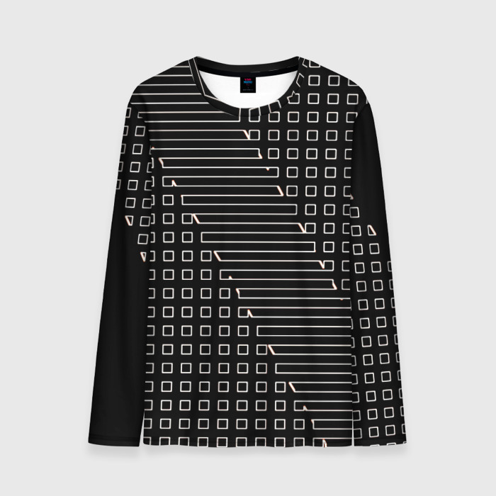 Мужской лонгслив 3D Чёрный абстрактный с квадратами