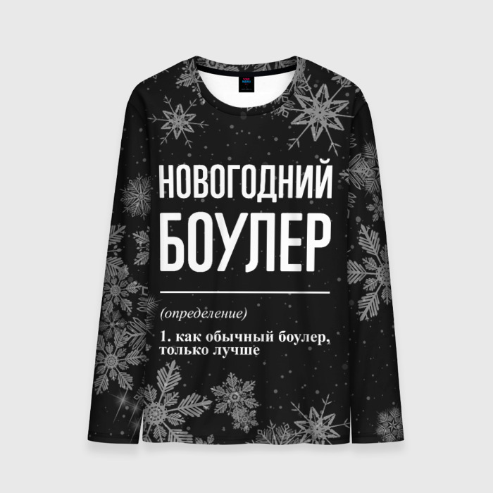 Мужской лонгслив 3D Новогодний боулер на темном фоне