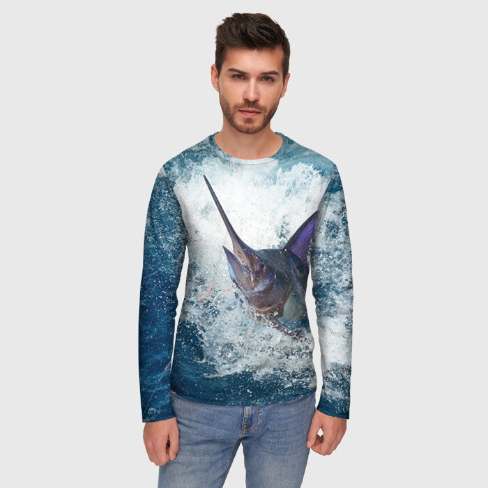 Мужской лонгслив 3D с принтом Рыбалка 1