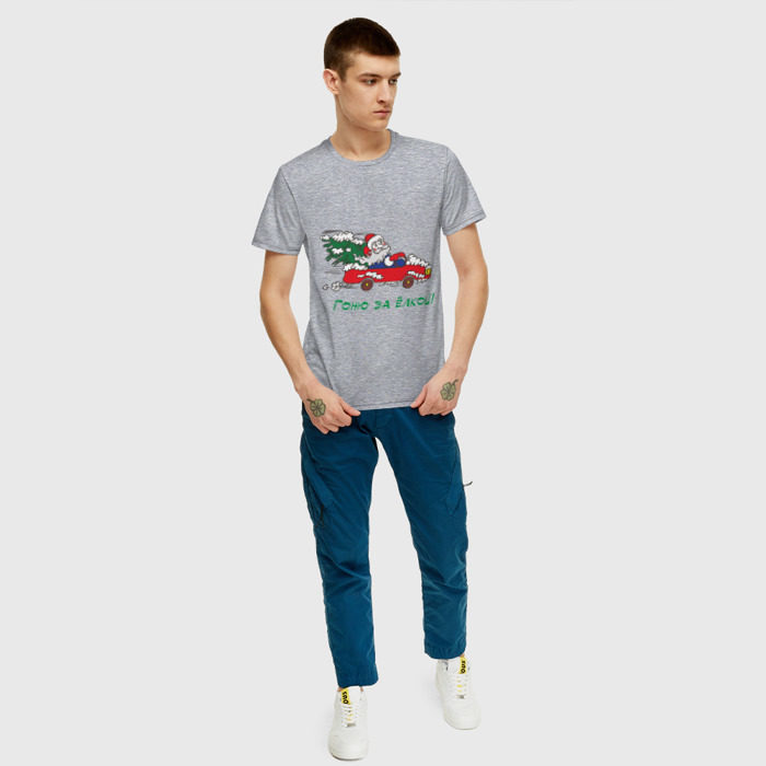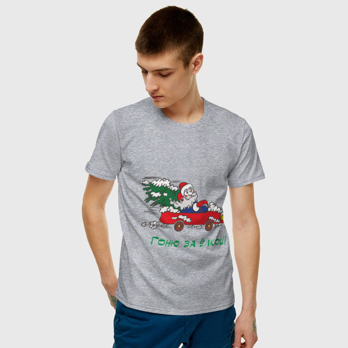Мужская футболка хлопок с принтом Гоню за ёлкой