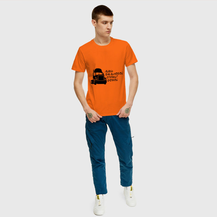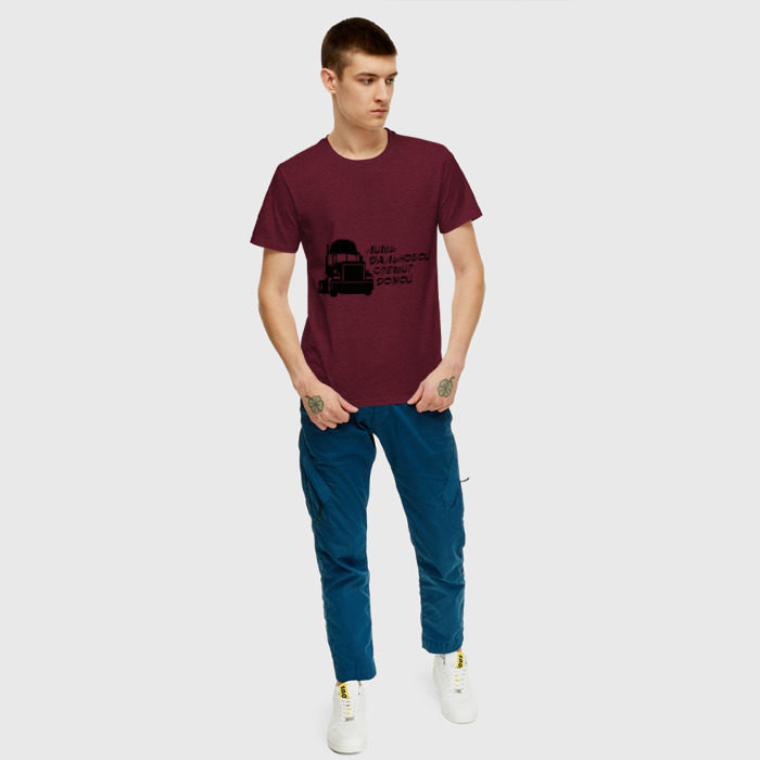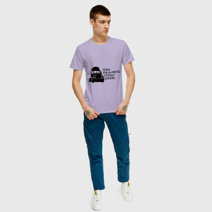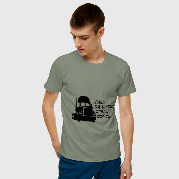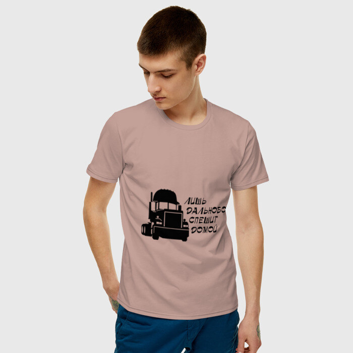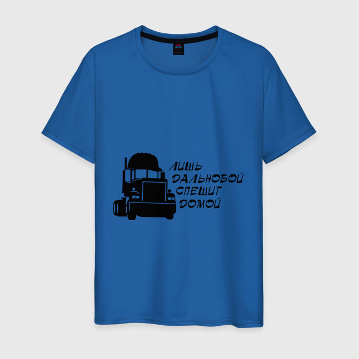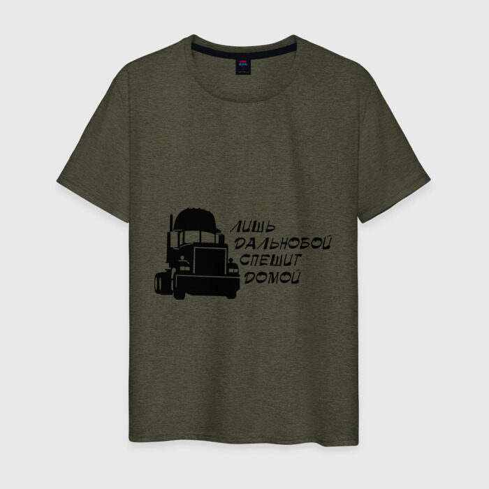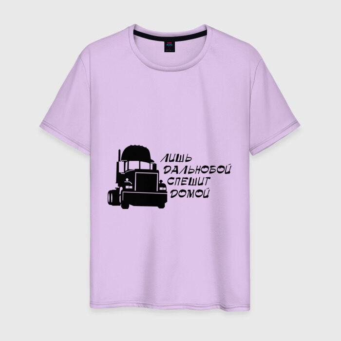 Мужская футболка хлопок с принтом Дальнобой спешит домой
