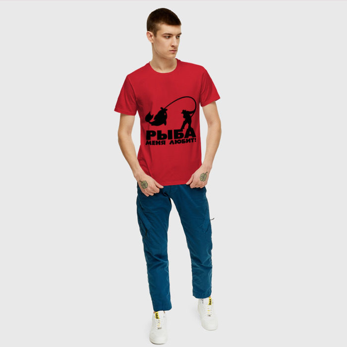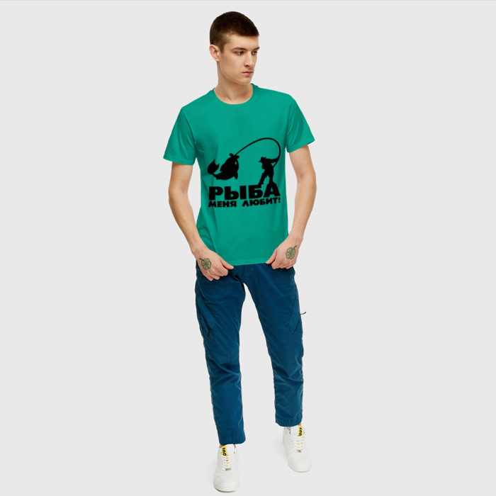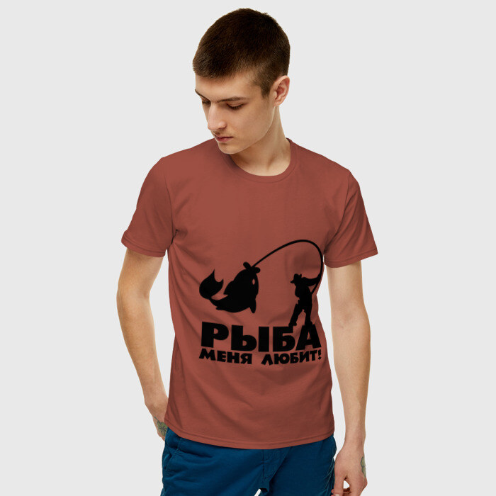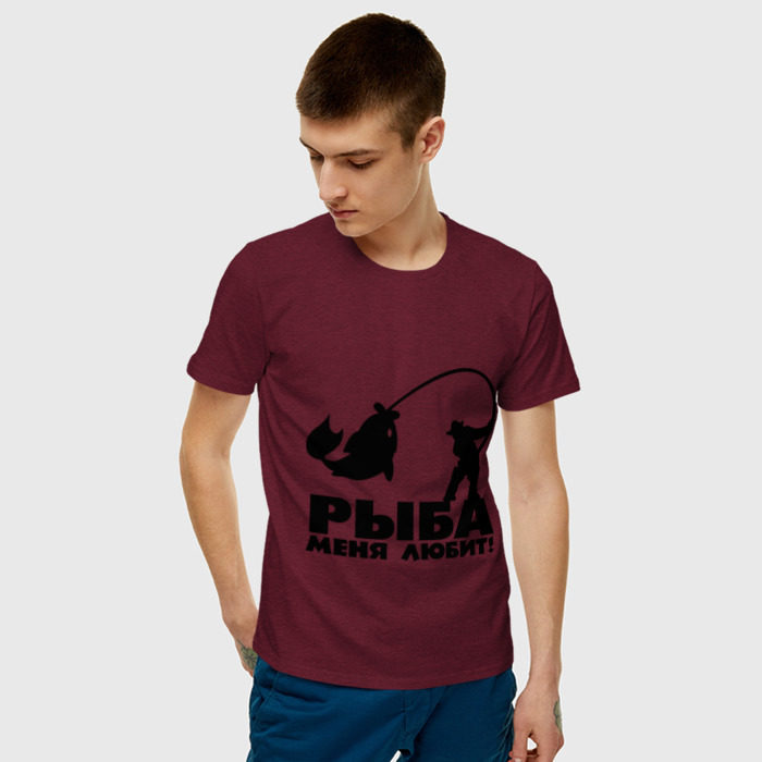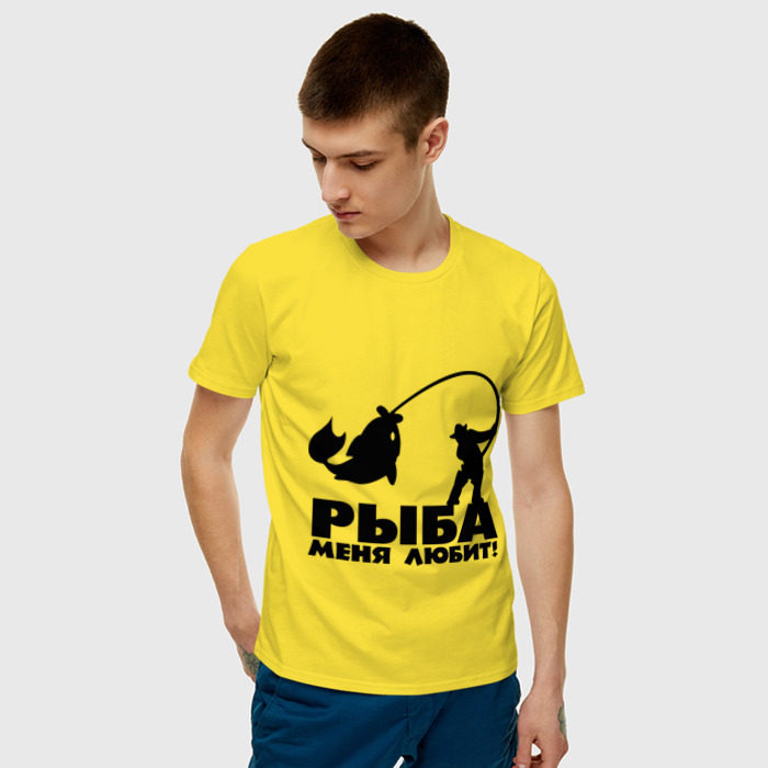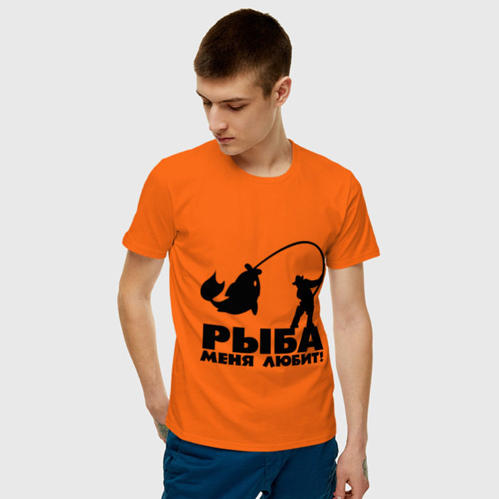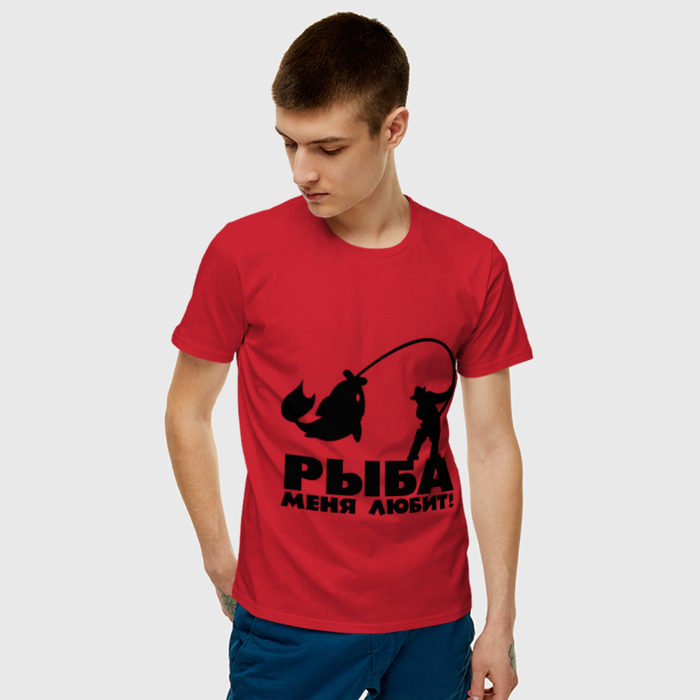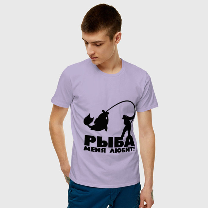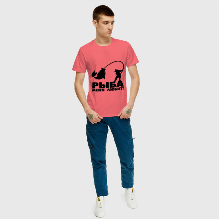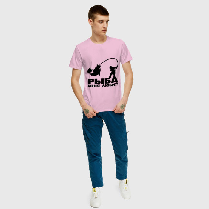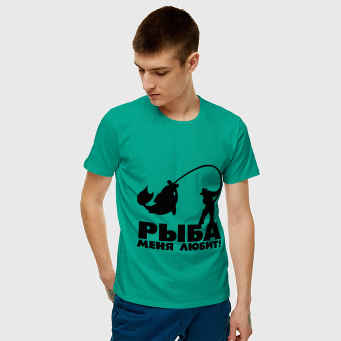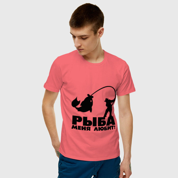 Мужская футболка хлопок с принтом Рыба меня любит!