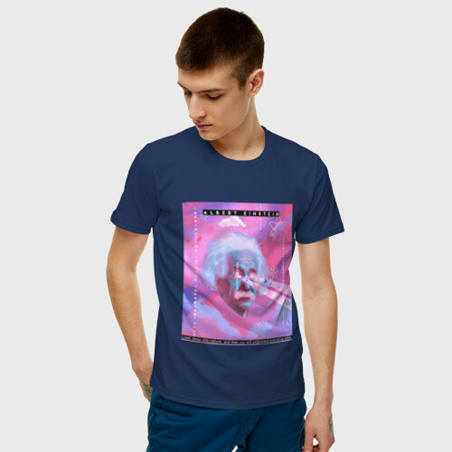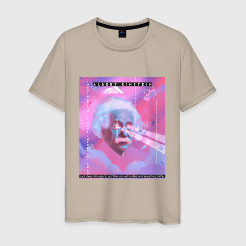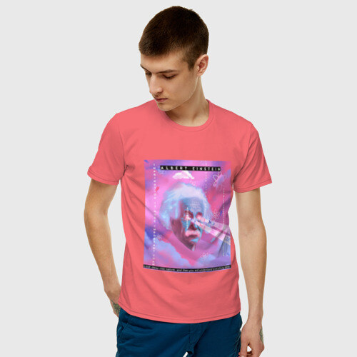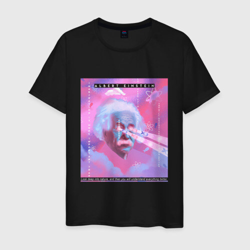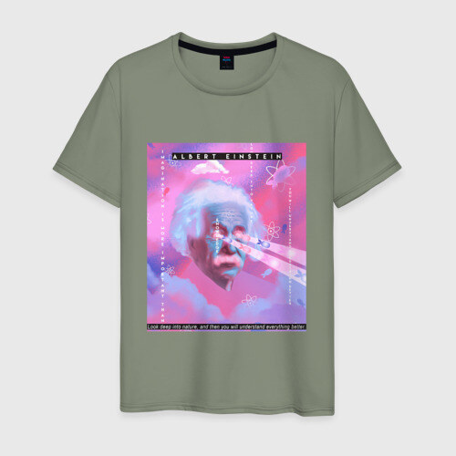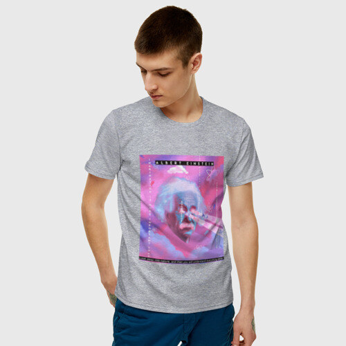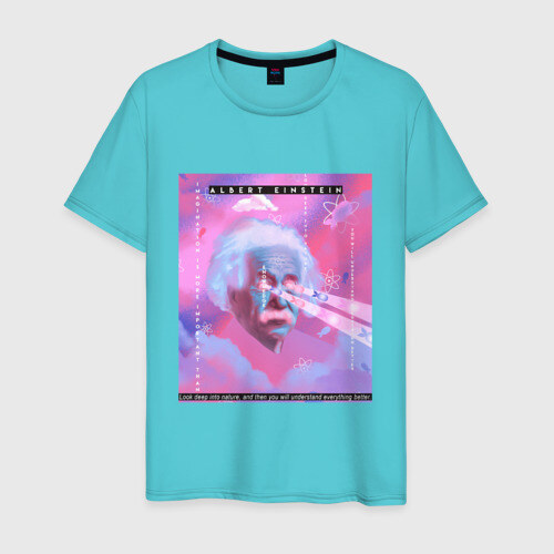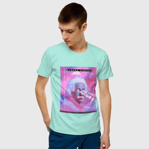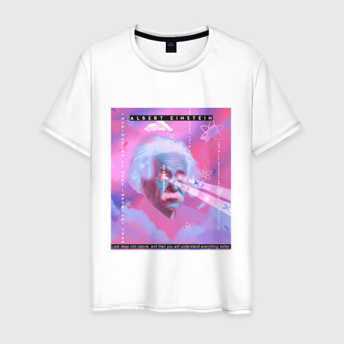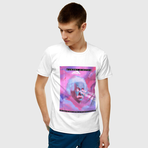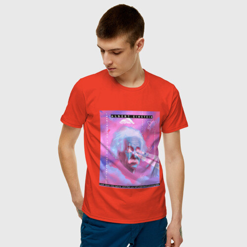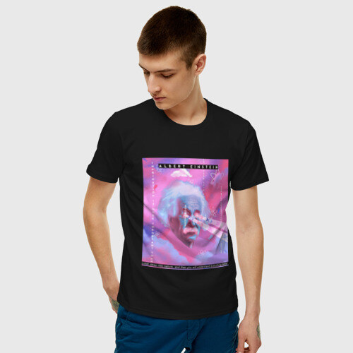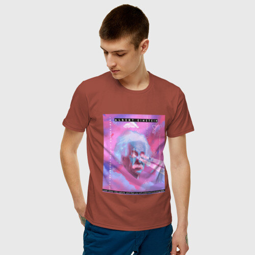 Мужская футболка хлопок с принтом Albert Einstein glitch art