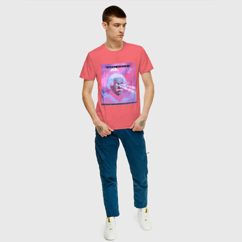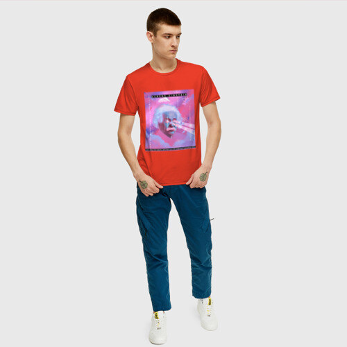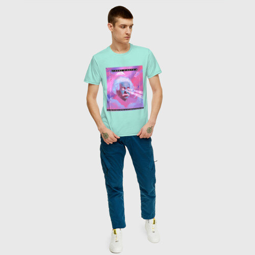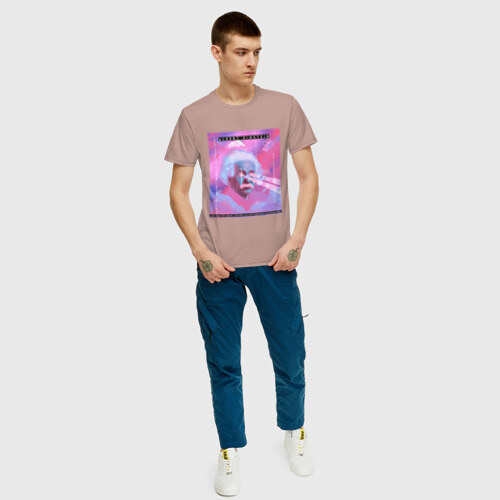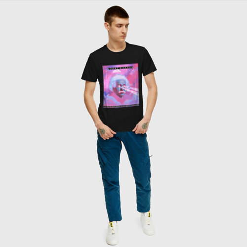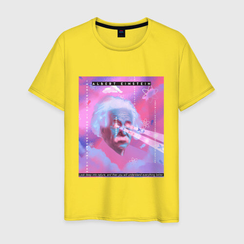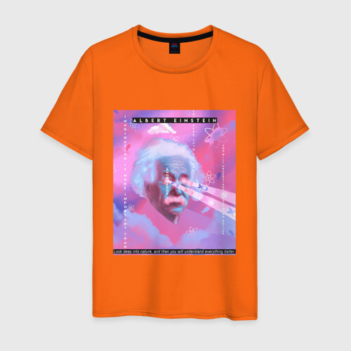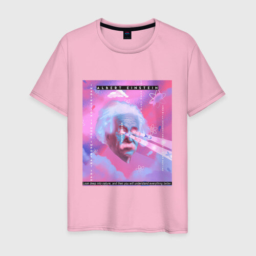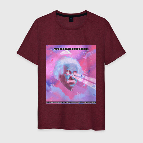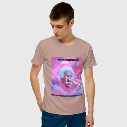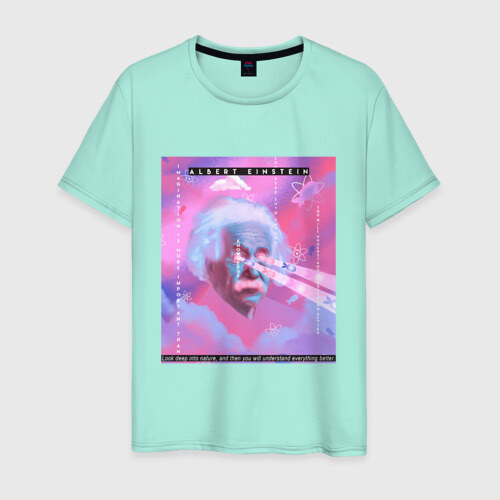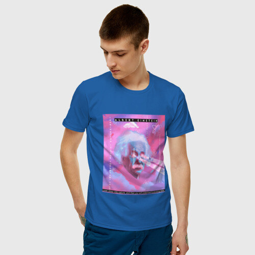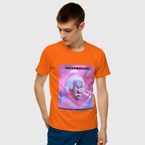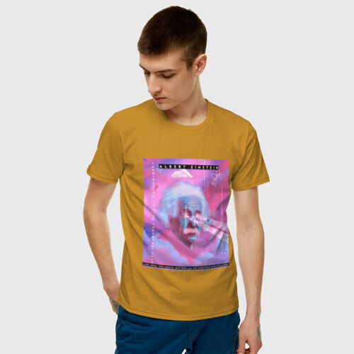 Мужская футболка хлопок с принтом Albert Einstein glitch art