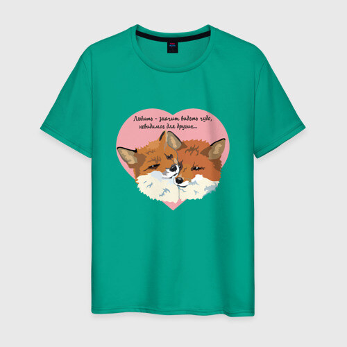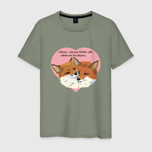 Мужская футболка хлопок с принтом Влюбленные лисы