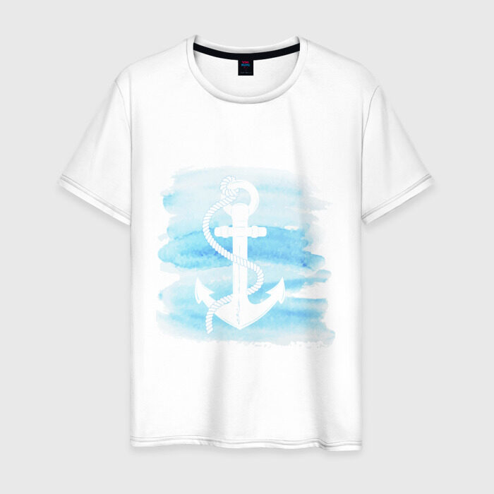 Мужская футболка хлопок якорь на акварельном фоне