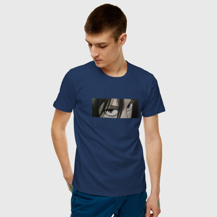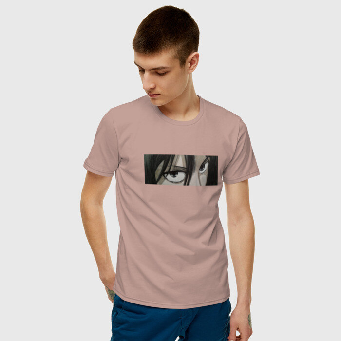 Мужская футболка хлопок с принтом Взгляд Микасы