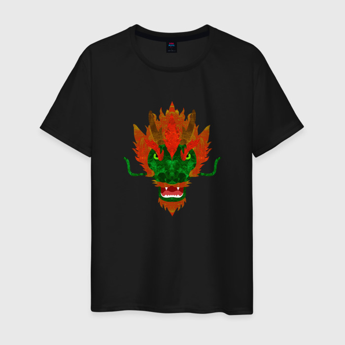 Мужская футболка хлопок Голова зеленого дракона с усами