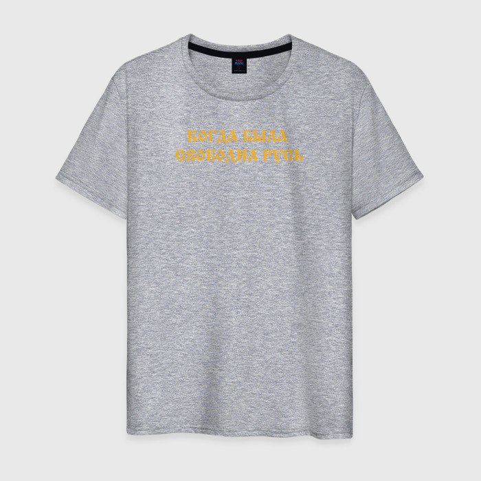 Мужская футболка хлопок с принтом Когда была свободна Русь Желтый текст