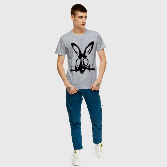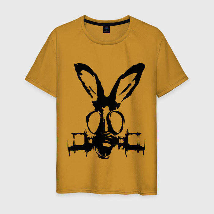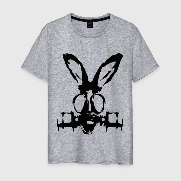 Мужская футболка хлопок с принтом Заяц в противогазе