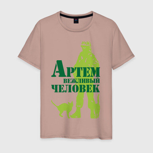 Мужская футболка хлопок с принтом Артём вежливый человек
