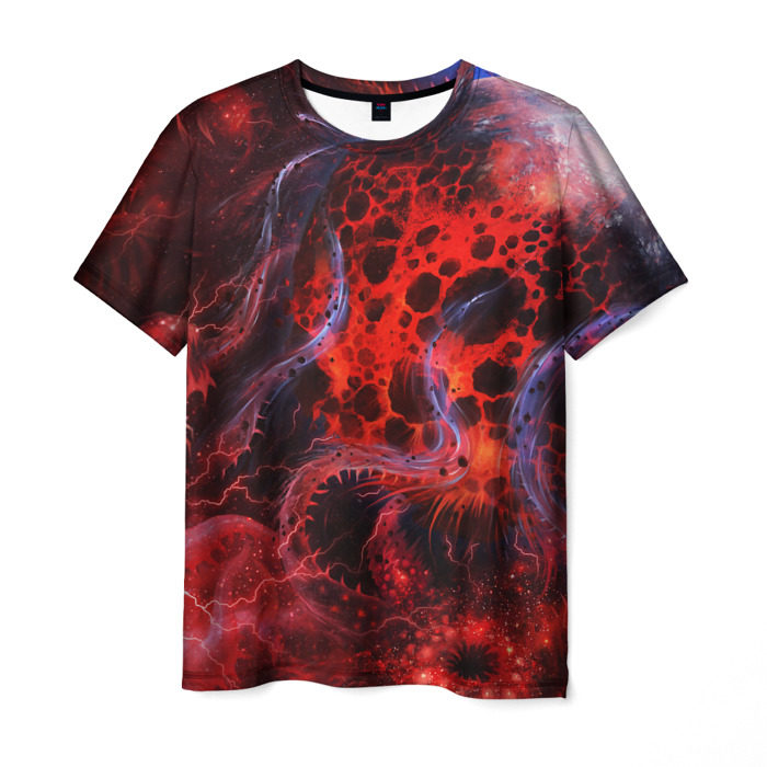 Мужская футболка 3D — это удобная футболка прямого кроя с круглым вырезом горловины и принтом по всей поверхности. Длина до линии бедер.