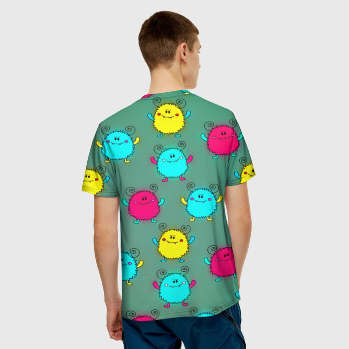 Мужская футболка 3D — это удобная футболка прямого кроя с круглым вырезом горловины и принтом по всей поверхности. Длина до линии бедер.