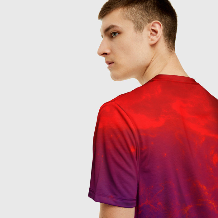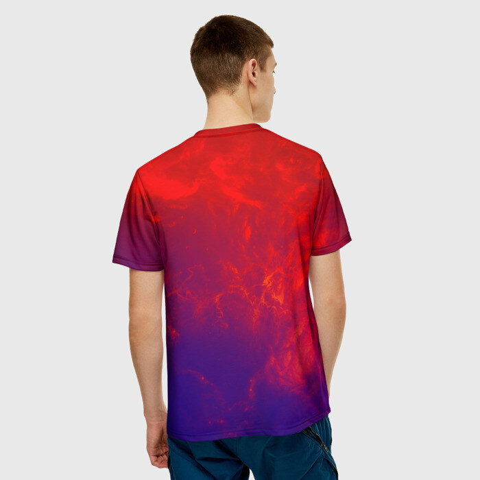 Мужская футболка 3D — это удобная футболка прямого кроя с круглым вырезом горловины и принтом по всей поверхности. Длина до линии бедер.