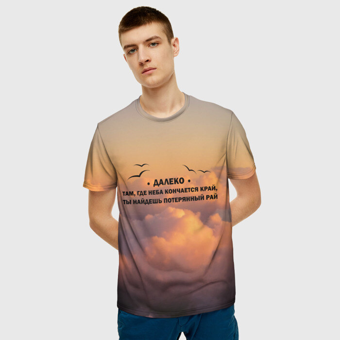 Мужская футболка 3D — это удобная футболка прямого кроя с круглым вырезом горловины и принтом по всей поверхности. Длина до линии бедер.
