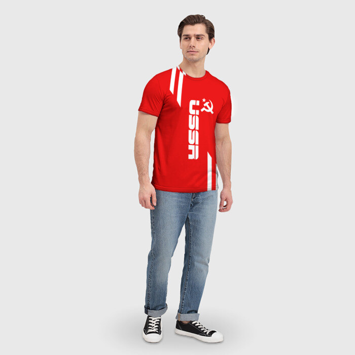 Мужская футболка 3D — это удобная футболка прямого кроя с круглым вырезом горловины и принтом по всей поверхности. Длина до линии бедер.