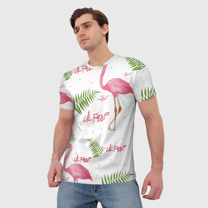 Мужская футболка 3D с принтом Lil Peep pink flamingo