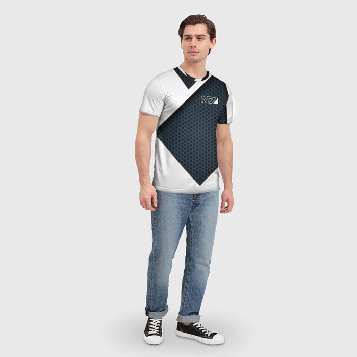Мужская футболка 3D — это удобная футболка прямого кроя с круглым вырезом горловины и принтом по всей поверхности. Длина до линии бедер.