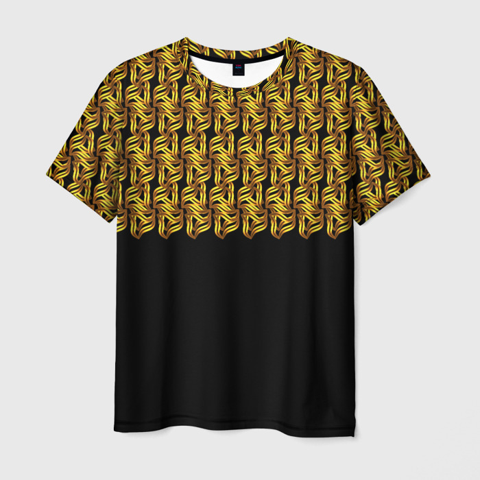 Мужская футболка 3D с принтом Золотой узор и черный фон