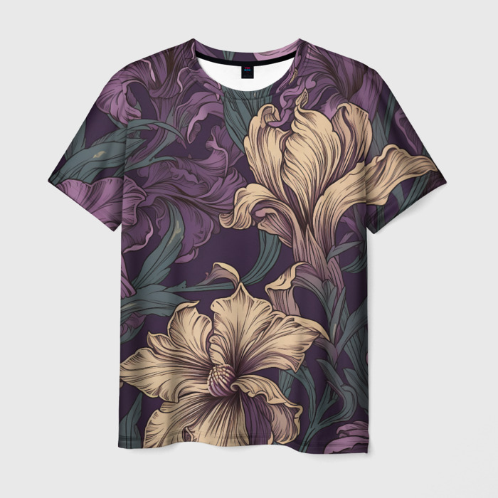 Мужская футболка 3D Фантазийные цветы на фиолетовом фоне