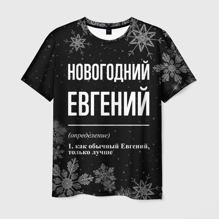 Мужская футболка 3D Новогодний Евгений на темном фоне