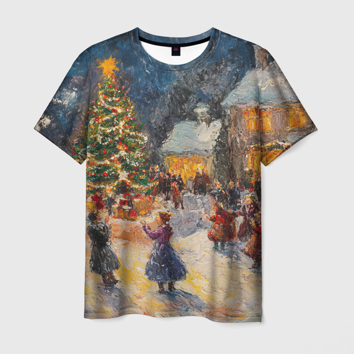 Мужская футболка 3D Новогодняя ночь во дворе пейзаж