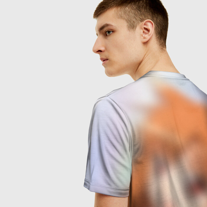 Принт нанесен методом сублимации на ткани. Ткань хорошо пропускает воздух и впитывает влагу. 3d футболка с полной запечаткой быстро сохнет, не мнется и сохраняет форму. Рисунок не тускнеет и не выцветает даже после нескольких лет активного использования.
