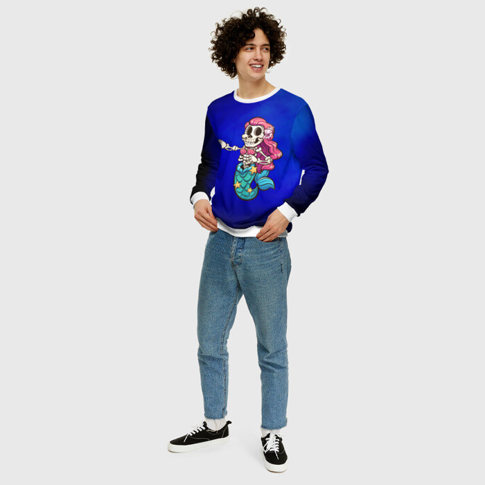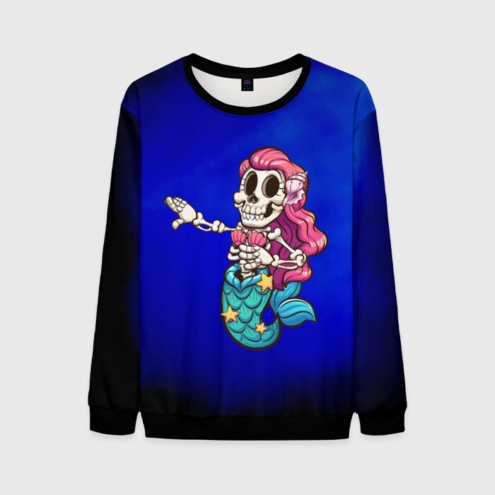 Мужской свитшот 3D Русалка скелет Mermaid skeleton