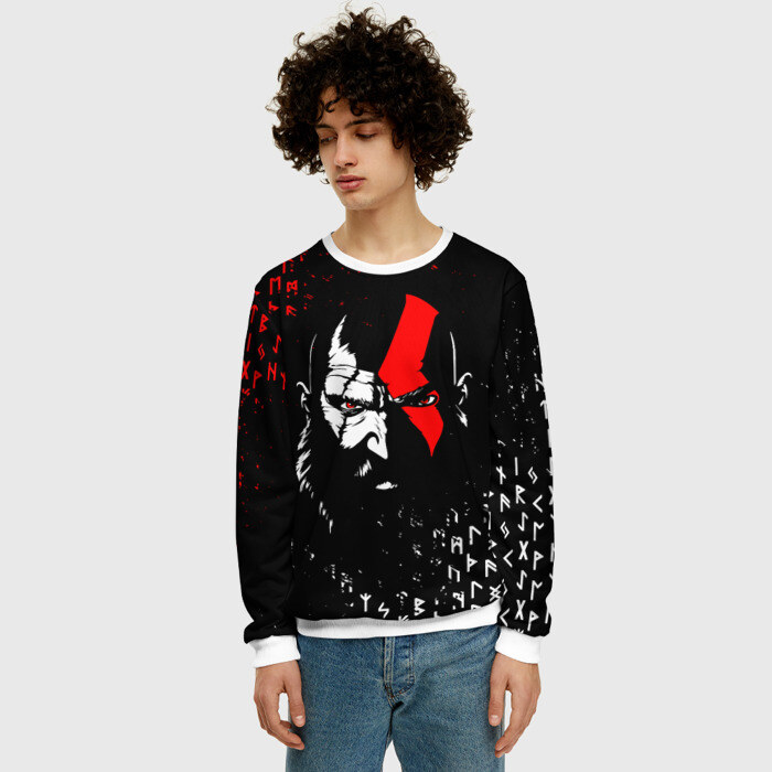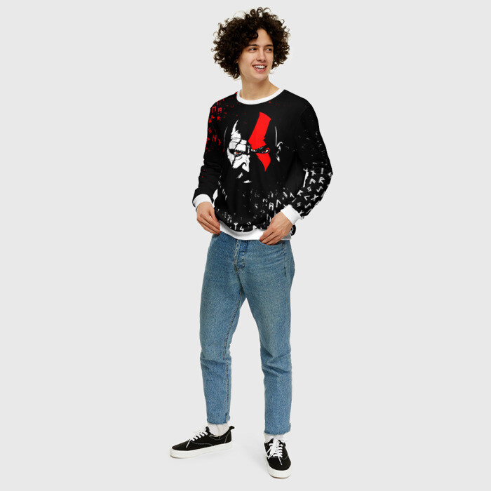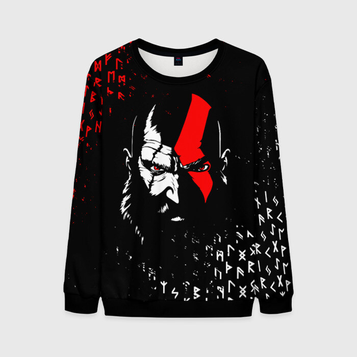 Мужской свитшот 3D GOD OF WAR КРАТОС И РУНЫ