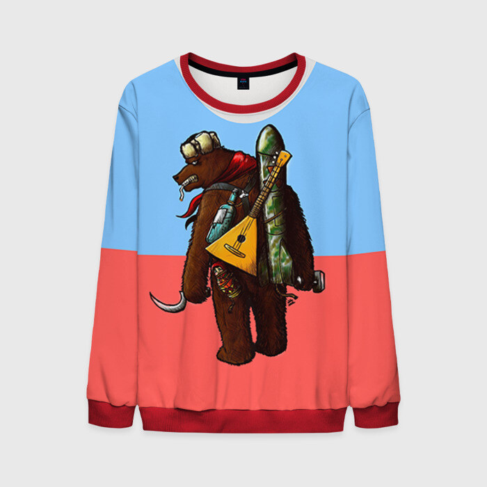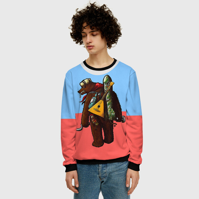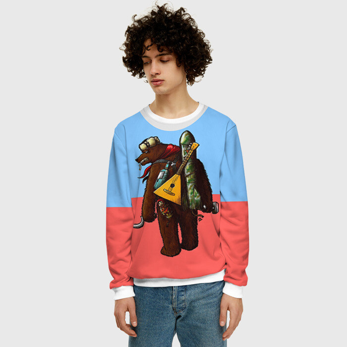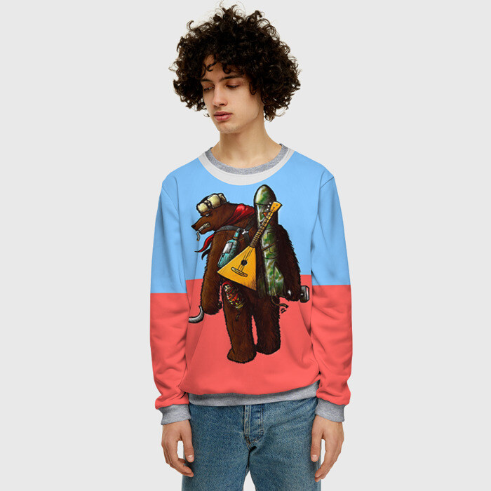 Мужской свитшот 3D Россия. Медведь. Балалайка