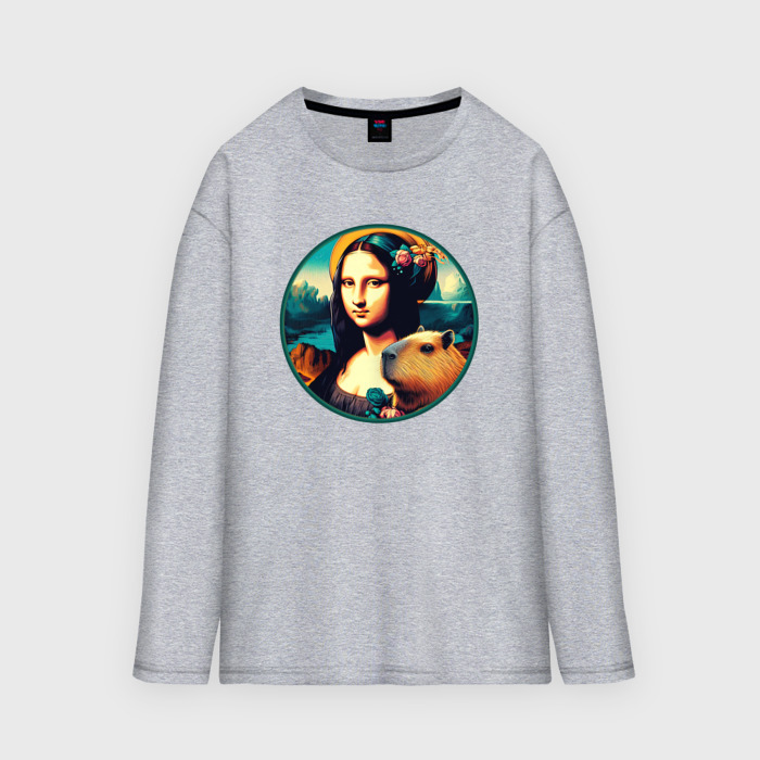 Мужской лонгслив oversize хлопок AI ART МОНА ЛИЗА С КАПИБАРОЙ