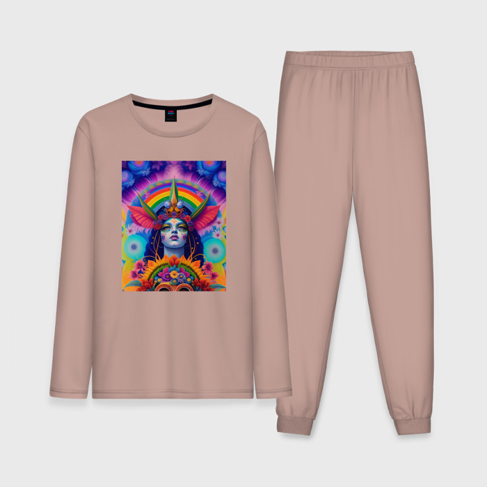 Мужская пижама хлопок (с лонгсливом) ИНДИЙСКАЯ БОГИНЯ В ЦВЕТАХ