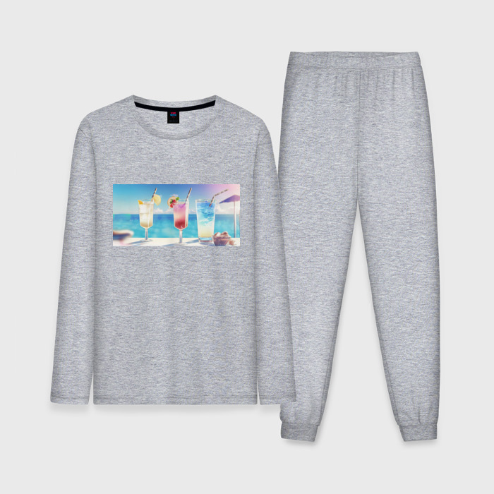 Мужская пижама хлопок (с лонгсливом) ЦВЕТНЫЕ КОКТЕЙЛИ НА ПЛЯЖЕ