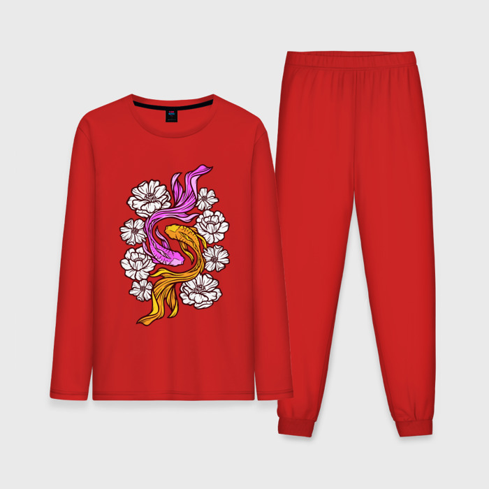 Мужская пижама с лонгсливом хлопок Рыбки и цветы