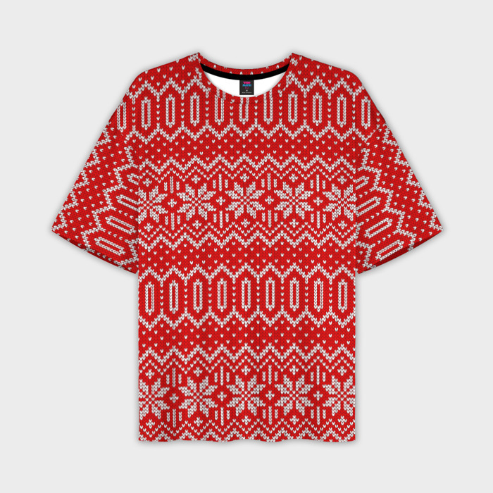 Мужские футболки OVERSIZE ЦВЕТНОЙ ВЯЗАНЫЙ ОРНАМЕНТ
