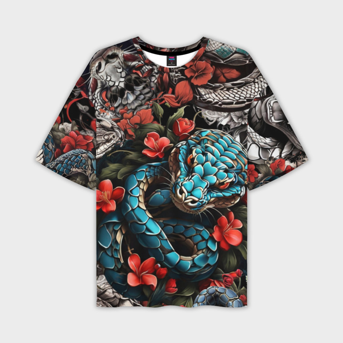 Мужские футболки OVERSIZE ЗМЕЯ В СТИЛЕ ЯПОНСКОЙ ТАТУИРОВКИ ИРЕЗУМИ